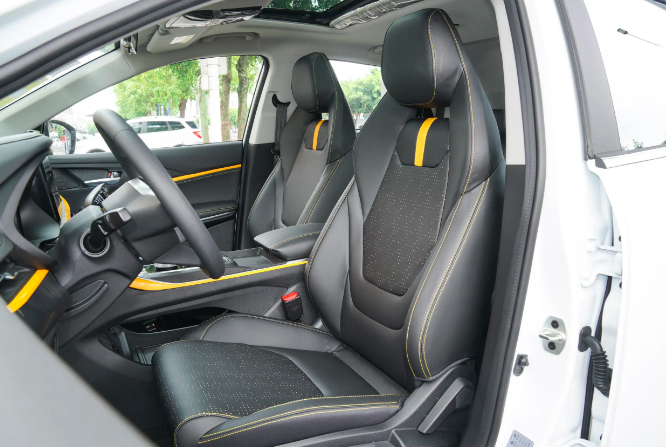内饰部分,思皓X6内饰整体设计采用简约的设计风格,旭日橙和日冕黄两种配色,凸显了运动和时尚。T字型中控台搭配下部以及车门、扶手箱等处的彩色装饰条,将内饰风格营造的更为时尚,符合时下年轻用户的口味。