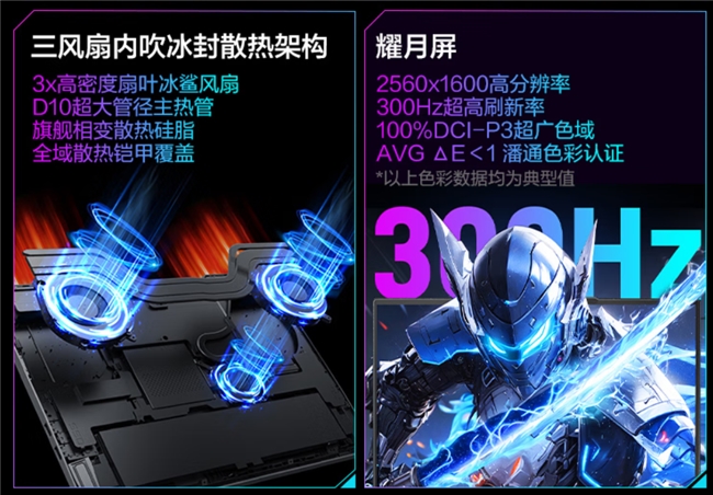 屏幕与细节体验拉满,配备16英寸“耀月屏”,拥有2.5K(2560×1600)分辨率与300Hz超高刷新率,覆盖100% DCI-P3色域,色准ΔE小于1并通过潘通色彩认证,无论是电竞游戏的丝滑操作,还是专业设计的精准色彩呈现,都能轻松驾驭。外观采用纳米级超声铣削全金属机身,冷奢钛灰配色搭配镭射纹LOGO,低调中彰显个性,整机便携性出色,兼顾时尚与实用性。接口配置丰富,搭载高速雷电接口,可满足大容量素材传输、外设供电、视频输出及单接口三屏拓展需求,适配摄影师、剪辑师等多屏协同办公场景;1600万色RGB可调背光键盘与AGC磨砂玻璃触控板,进一步提升操控舒适度。