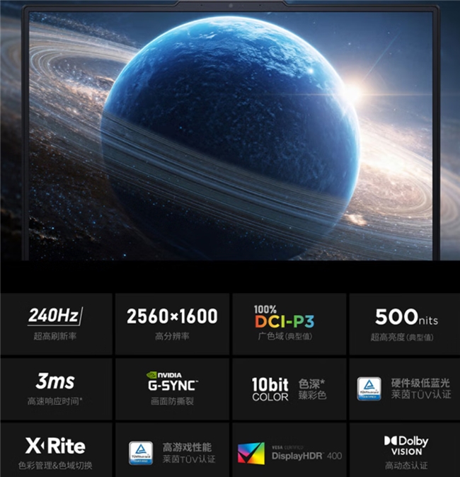 屏幕素质堪称同级优选,配备16英寸2.5K专业超竞屏,240Hz高刷新率保障快节奏FPS游戏的跟手度,100% DCI-P3色域覆盖则满足色彩精准需求,无论是游戏娱乐的沉浸画面,还是日常学习、专业创作的清晰呈现,都能完美适配。