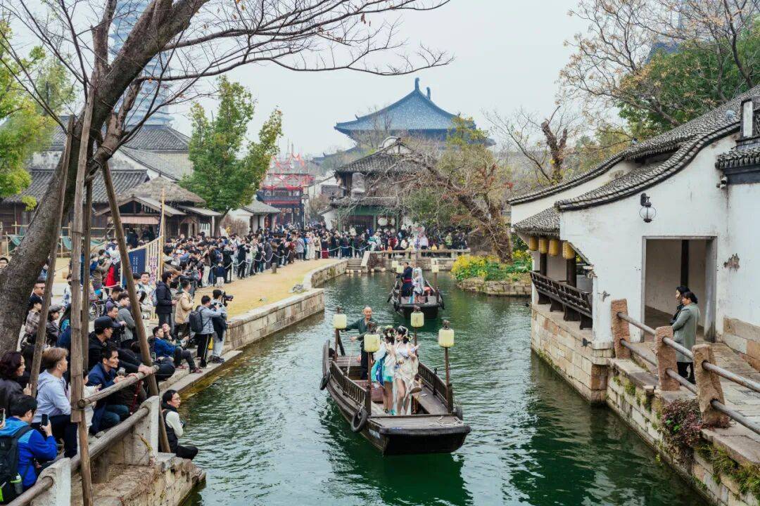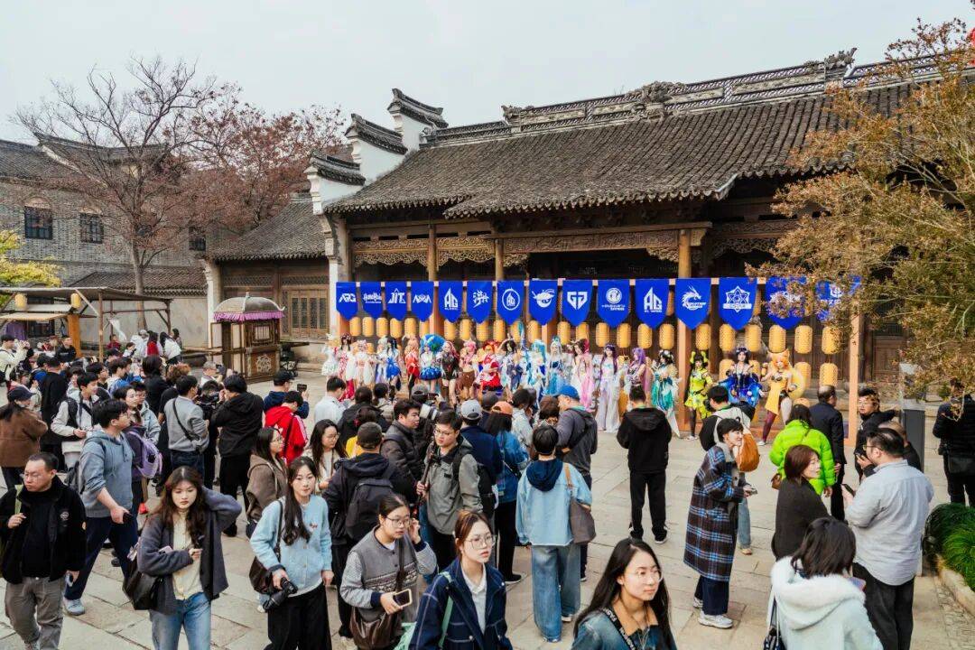 “巅峰对决”之外,濮院时尚古镇已全域化身为一座“无界”的电竞主题乐园。安琪拉、王昭君、杨玉环、后羿等一众电竞人物现身棋盘巷,与游客惊喜互动;亭台楼阁间,经典游戏IP展陈、电竞水友赛互动随处可见;特色IP市集里,爱好者们争相打卡;更有知名Coser、动漫大咖空降现场引爆热潮……