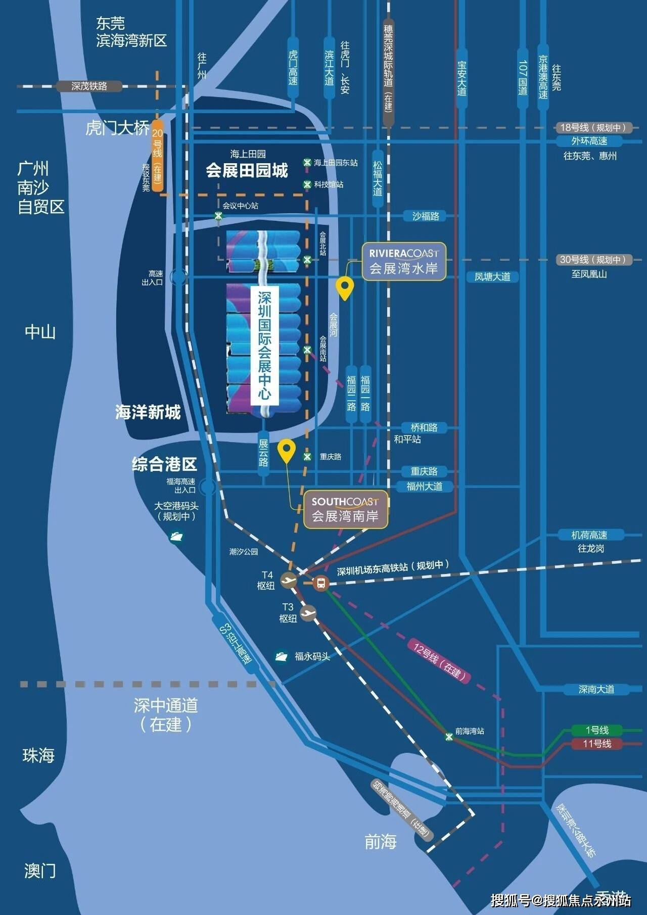 核心地段:坐落于深圳市宝安区福永街道福园二路,地处大前海会展新城核心区域,紧邻全球最大会展中心之一【深圳国际会展中心】,同时实现与地铁20号线国展南站无缝直连,是真正意义上的“会展旁+地铁上盖”综合体,地段稀缺性凸显。