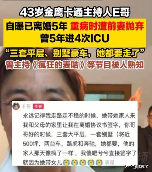 婚姻猝然断裂,财产几乎被掏空,健康支离破碎,彼时的E哥,真正跌入了人生的至暗深渊。